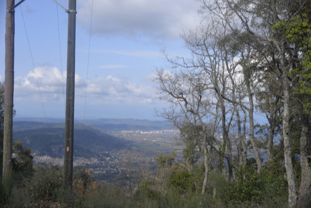 Rendez-vous à 10h sur le parking pour le départ. Nous serons accompagnés d’Éléonore et du grand maître randonneur. Le parcours matinal nous emmène sur une piste qui s’enfonce dans le massif des Maures. La montée, progressive mais sûre sur 10 km, nous conduit à 780 mètres d’altitude tout de même , à la chapelle de Notre-Dame des Maures, d’où une vue nuageux s’offre à nous.