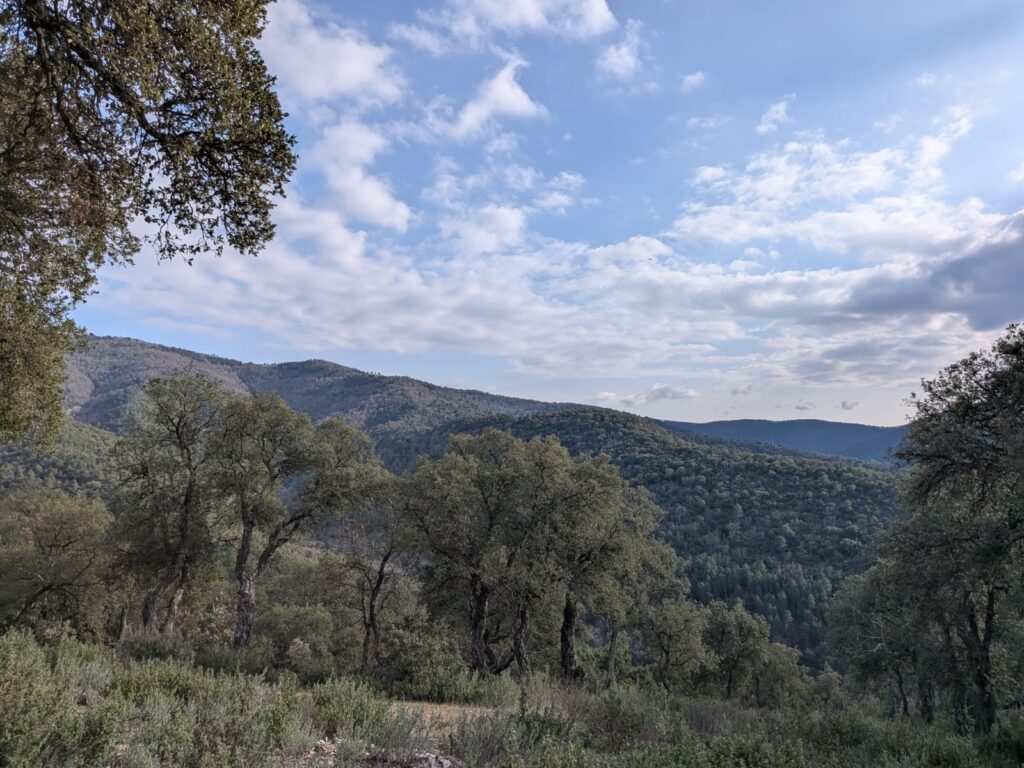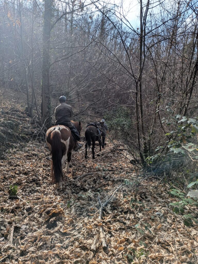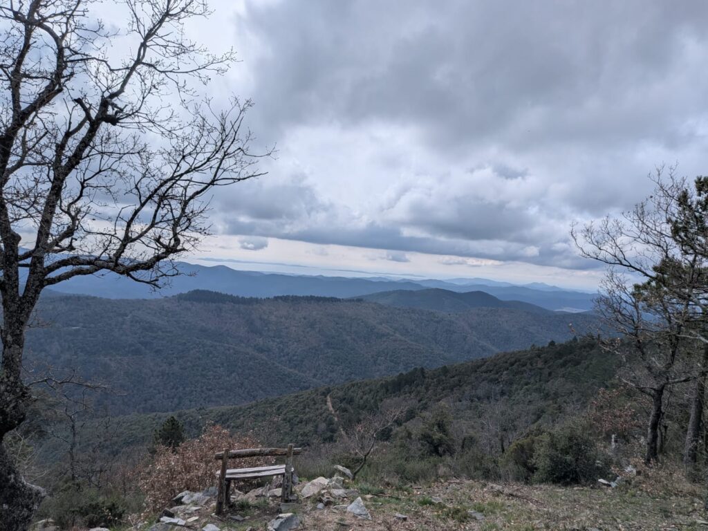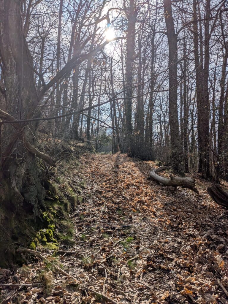 Après une pause déjeuner bien méritée, l’après-midi s’annonce plus aventureux. Le trajet, approximatif, nous égare d’abord dans une châtaigneraie. Le chemin, prometteur au départ, se transforme rapidement en parcours du combattant : arbres en travers, ronces… Nous rebroussons chemin après une rencontre épineuse !