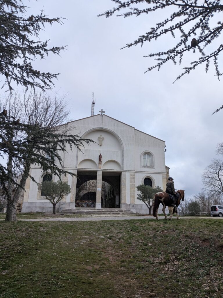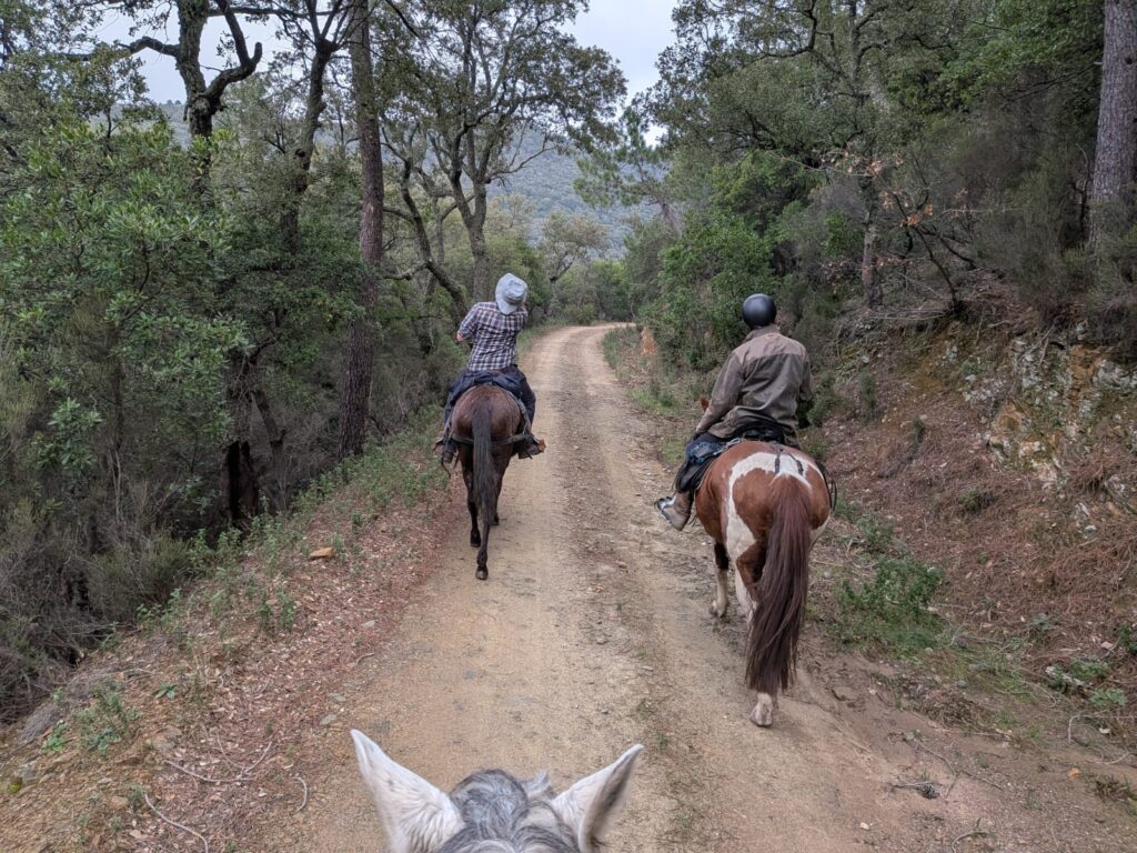 On se retrouve pour ce qui sera probablement notre dernière sortie POR de l’année, avant de reprendre la saison des TREC. Au programme : une randonnée dénivelée à Notre-Dame des Anges pour travailler le fond avec nos chevaux et mulet , sous un ciel grisâtre mais sans pluie.