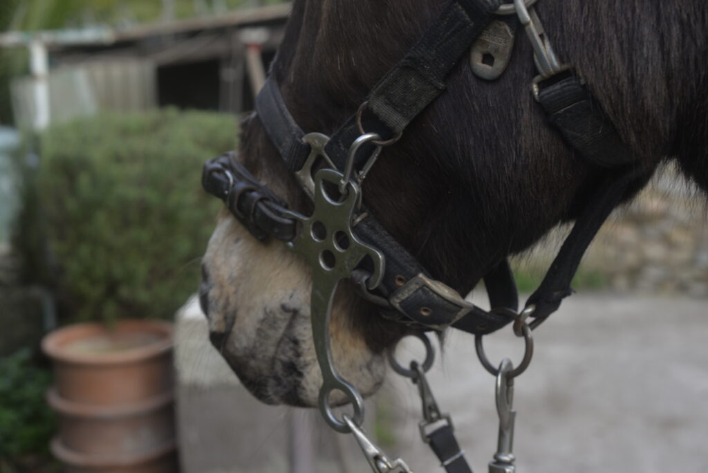 Pour l’embouchure, on retrouve le même licol, sur lequel vient se fixer un hackamore.