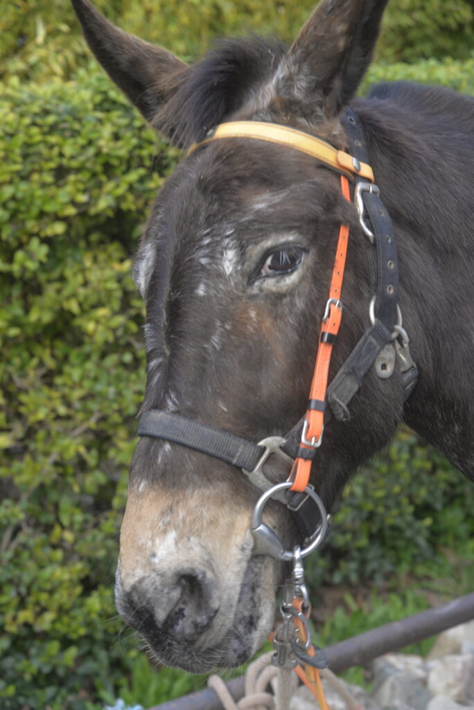 Au niveau de l’animal, il s’agit d’une mule de selle d’environ 1,43 m, avec une morphologie plutôt typée âne :